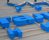 Говоря кратко, производство возможно благодаря специальному оборудованию, на котором производится изгиб Г-образного профиля по контуру необходимой буквы, а чтобы сделать корпус буквы, его соединяют с задней стенкой при помощи заклепок или саморезов. Затем его покрывают порошковой краской любого цвета, сзади устанавливается любой вариант подсветки. Боковые стороны вывески не освещаются, их высота не превышает 130 см. На самом деле данная конструкция имеет сравнительно небольшую стоимость. |